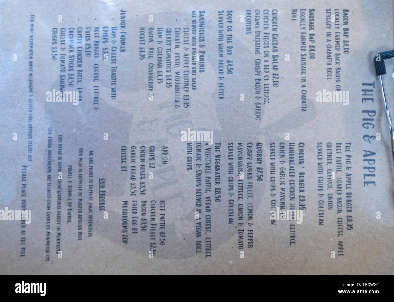 Menu At The Pig Apple Cafe The Cafe Is Based At Humble By Nature Monmouthshire Wales Stock Photo Alamy